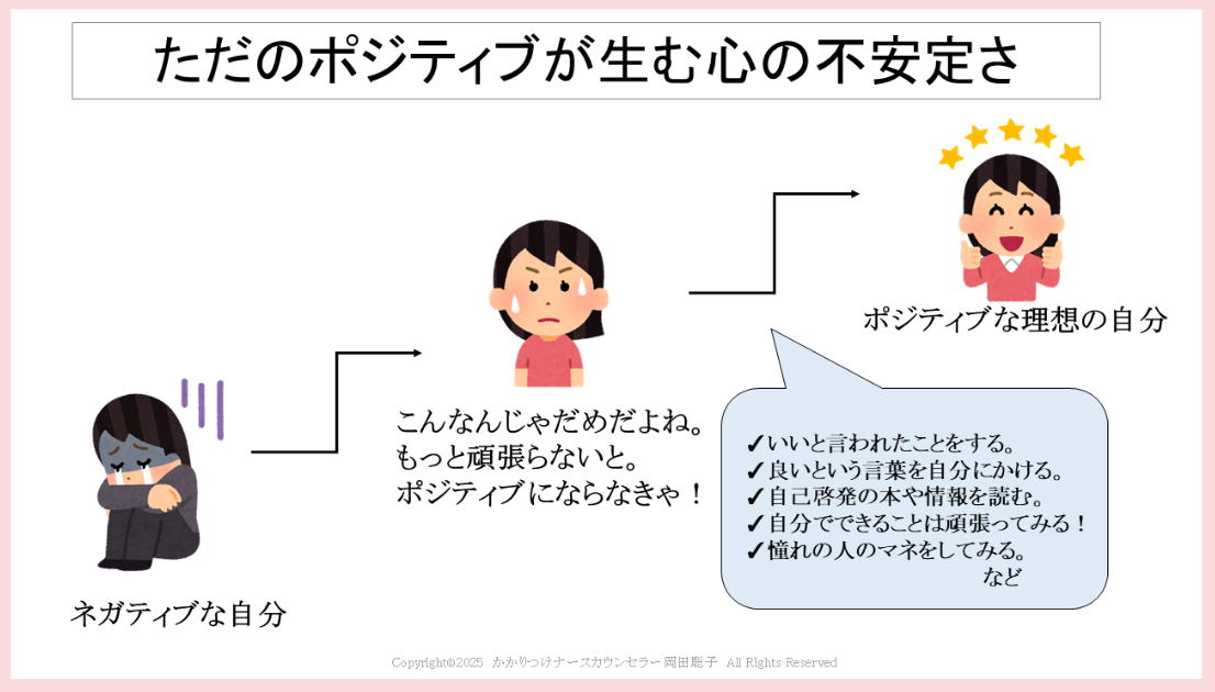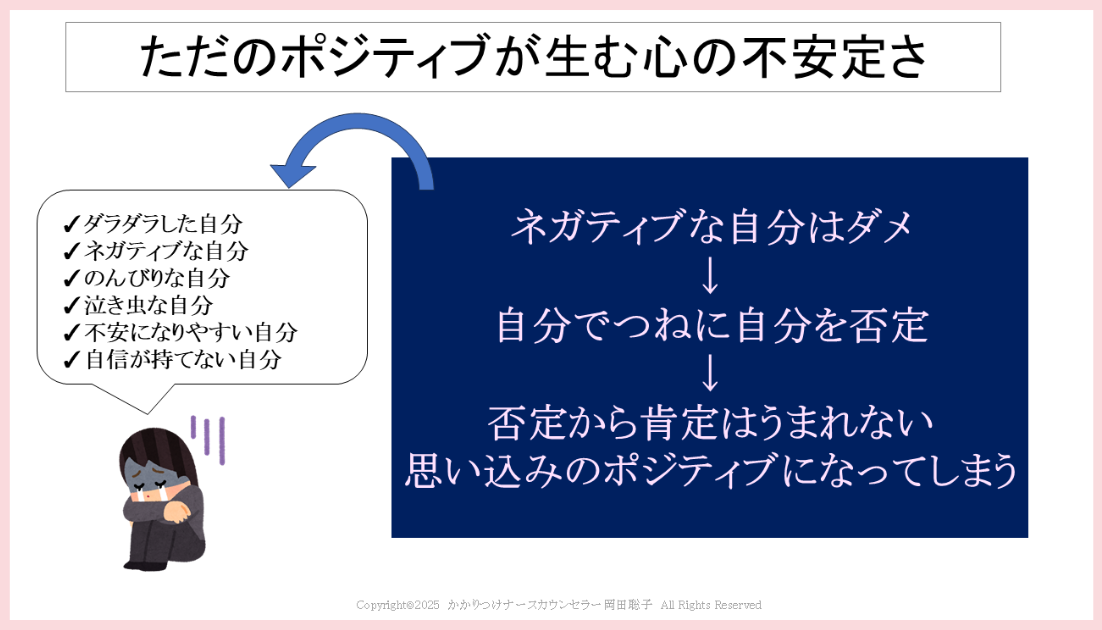 無理にポジティブになる必要はない。むしろ心のエネルギーが失われ、自己否定のループになっていきます。