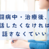真面目で頑張り屋さんは特に深く向き合いすぎてしまうことがあります。そんな時は早めに主治医や看護師、心の専門家にご相談ください。